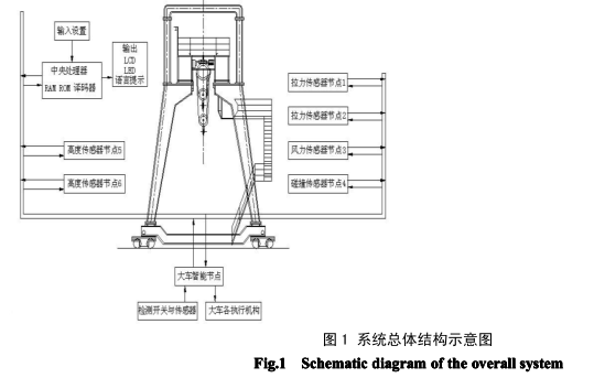 起重機用戶關(guān)心的涉及到安全方面的工況參數(shù)主要有:主鉤與副鉤的起重載荷和起升高度、大梁的 起重力矩、工作幅度、鋼絲繩狀況、風速(力)大小、起重過程中載荷振動情況以及大、小車的各種信 息(如輪子與軌道的接觸狀況、電動機轉(zhuǎn)速參數(shù)、溫度)等。如何對這些工況參數(shù)進行巡回采集、算法 處理,并實時輸出控制和提示是本系統(tǒng)設(shè)計的關(guān)鍵所在。